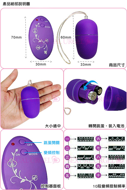.商品尺寸:控制器約:70mm*30mm;震蛋約:60mm*33mm