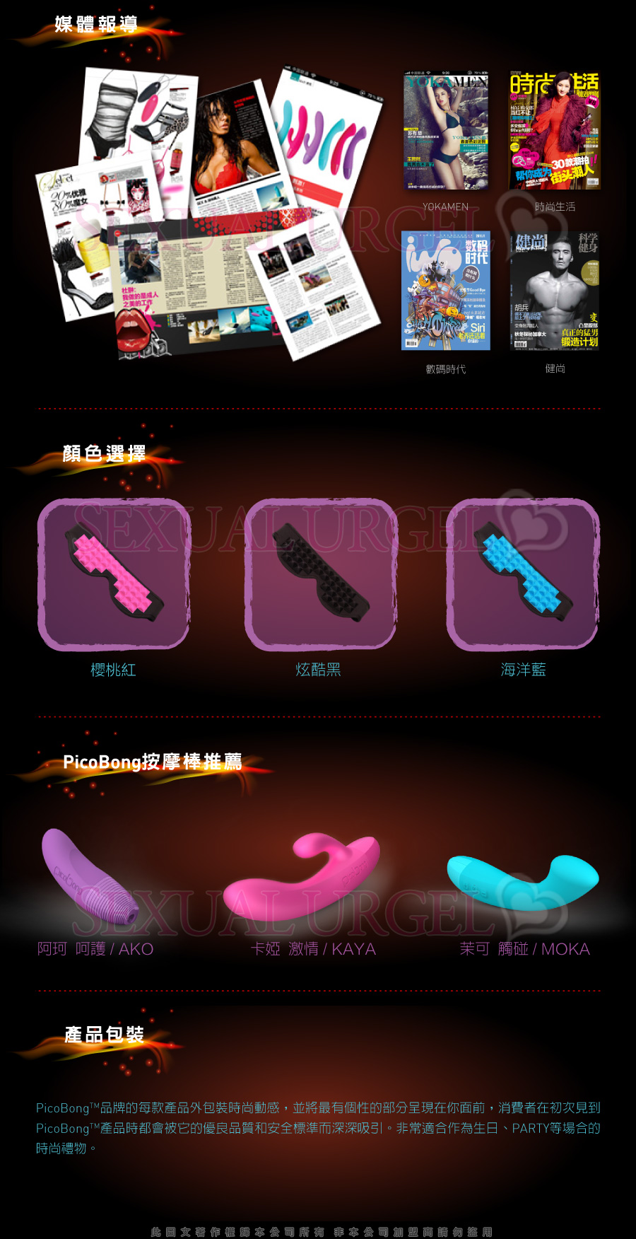 色彩明亮的產品帶來有滋有味的激情遊戲。包裝俏皮、時尚、雅致。