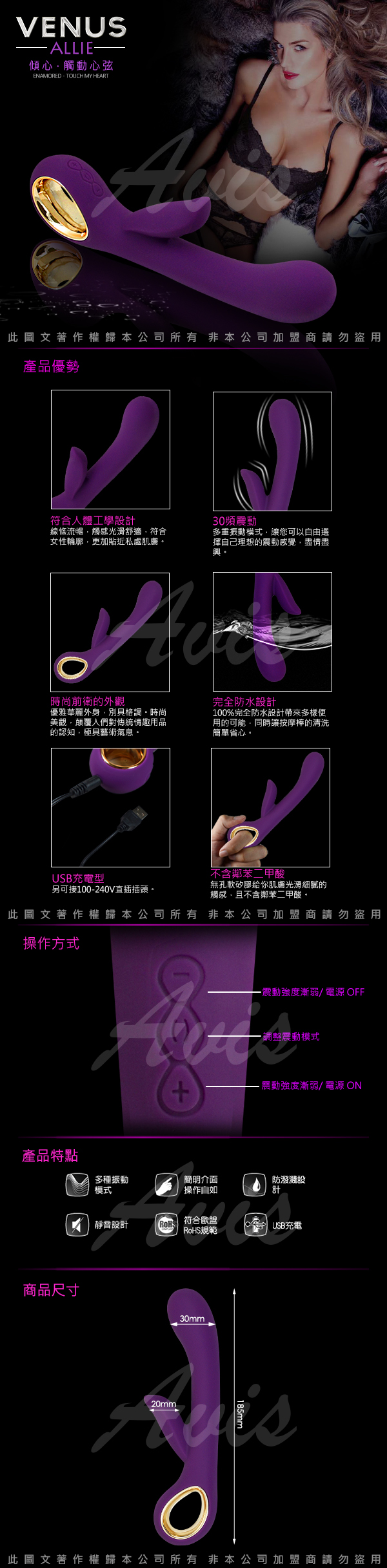艾莉 多功能雙震動 30頻 時尚精品迷你智能按摩棒 魅紫