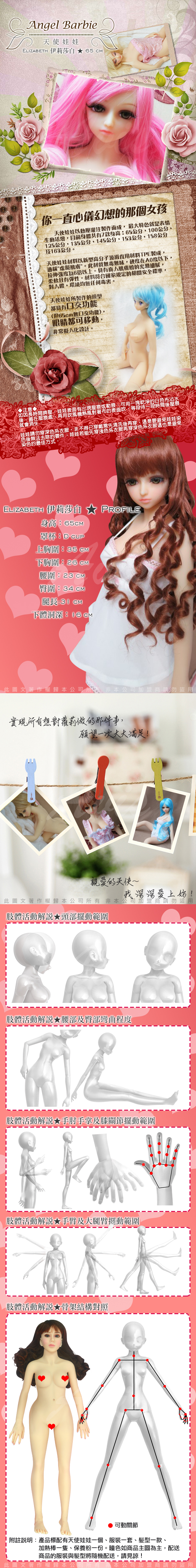 .商品內容:現貨供應 天使娃娃 真人矽膠娃娃 1:1非充氣 帶骨骼真人版 陰交 Elizabeth伊莉莎白-65CM