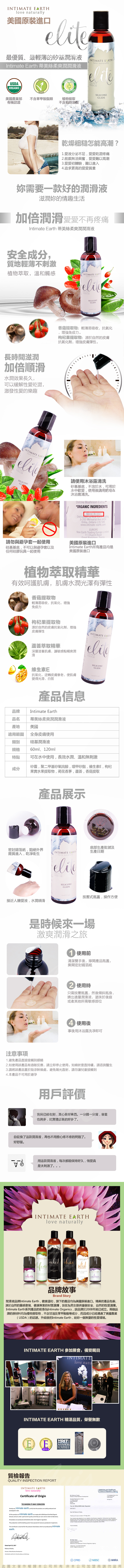 商品名稱:美國Intimate Earth-Elite 矽基 絲柔按摩油 60ml