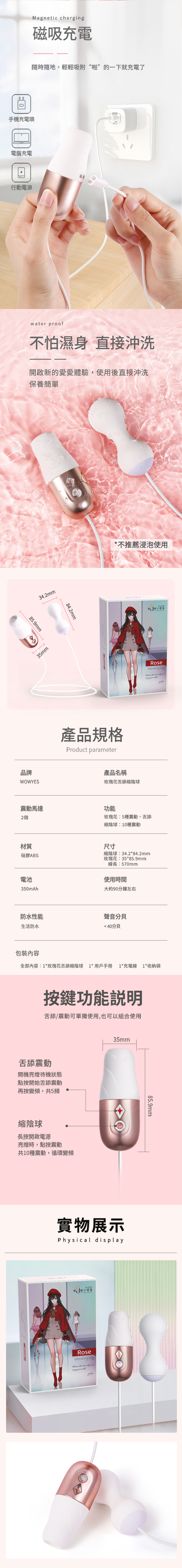 產品名稱:WOWYES-玫瑰花舌 5x10段變頻吸吮舌震共歡縮陰球震動跳蛋