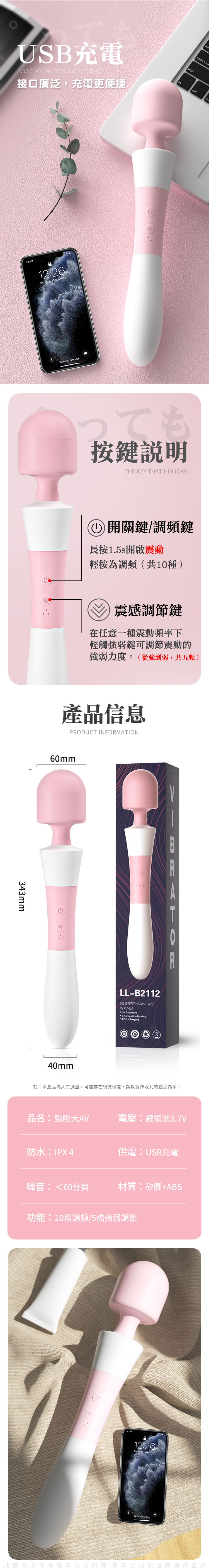 品名:勁啪大AV|震動酥麻|充電式按摩棒 粉白
