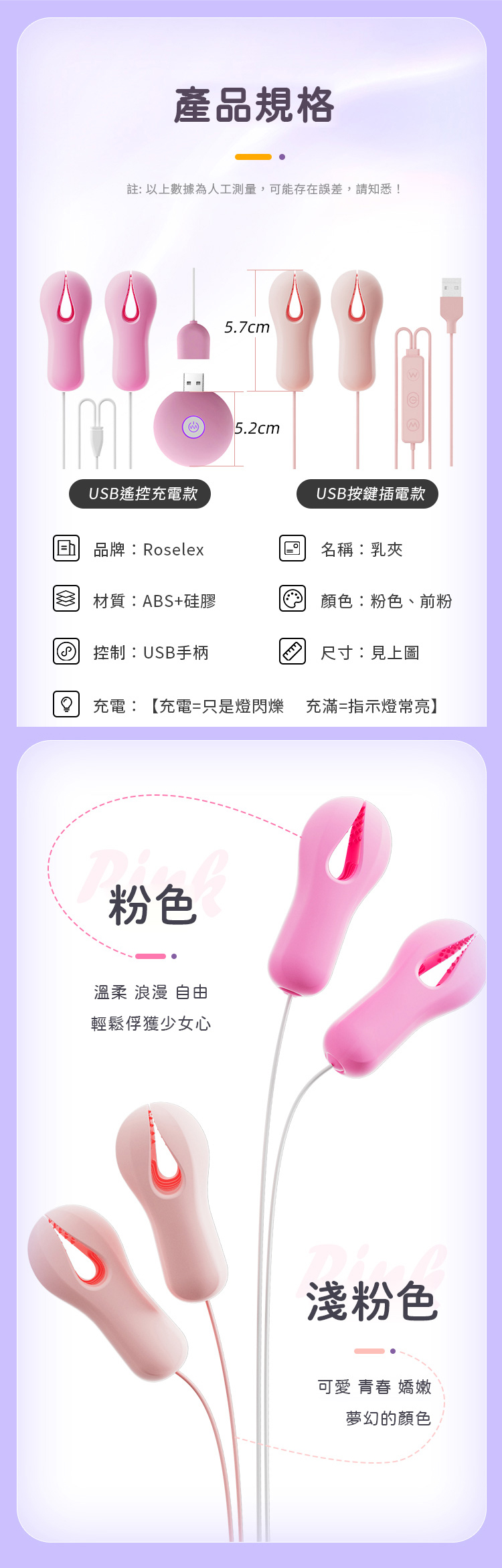 產品名稱:戲乳玩乳|強震親膚乳頭夾|USB遙控充電款