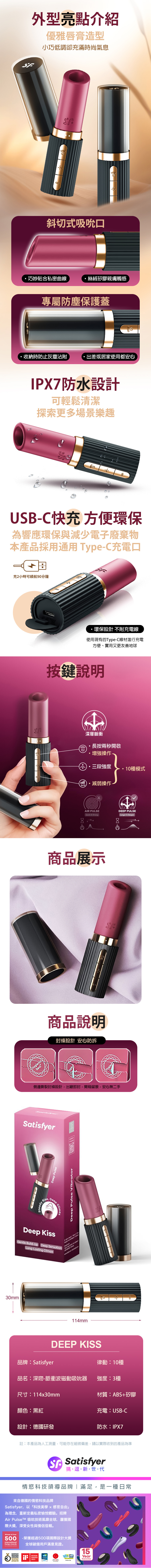 品名:Satisfyer|Deep Kiss|深吻 脈衝波磁動吸吮器 黑